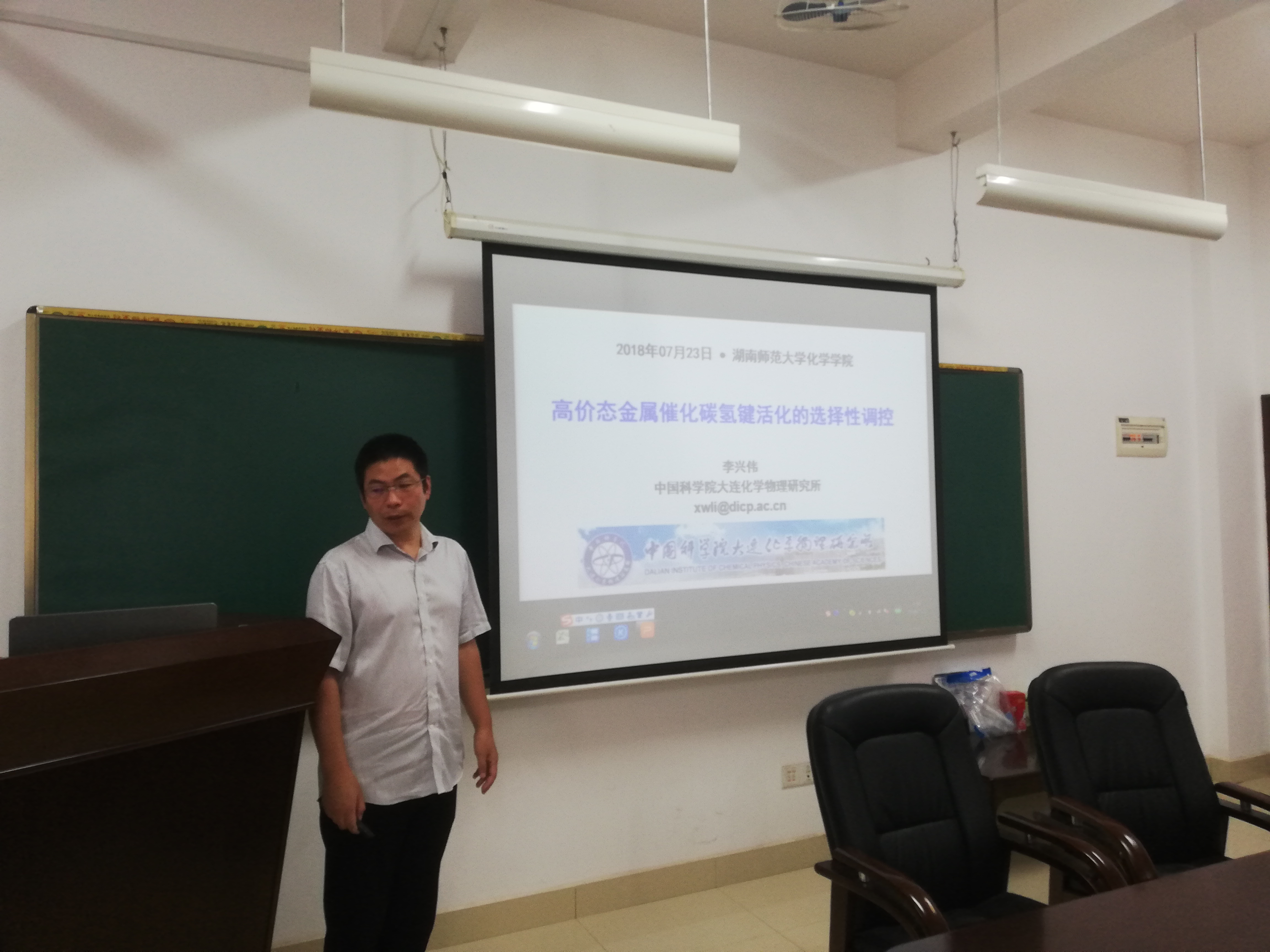2018年7月23日上午9:00在化工院206会议室,陕西师范大学李兴伟教授应邀来我院进行学术交流,就高价态金属催化碳氢键活化:底物活化与反应选择性调控进行了报告。报告由我院院长陈波教授主持,化学化工学院部分老师,研究生聆听了此次报告。