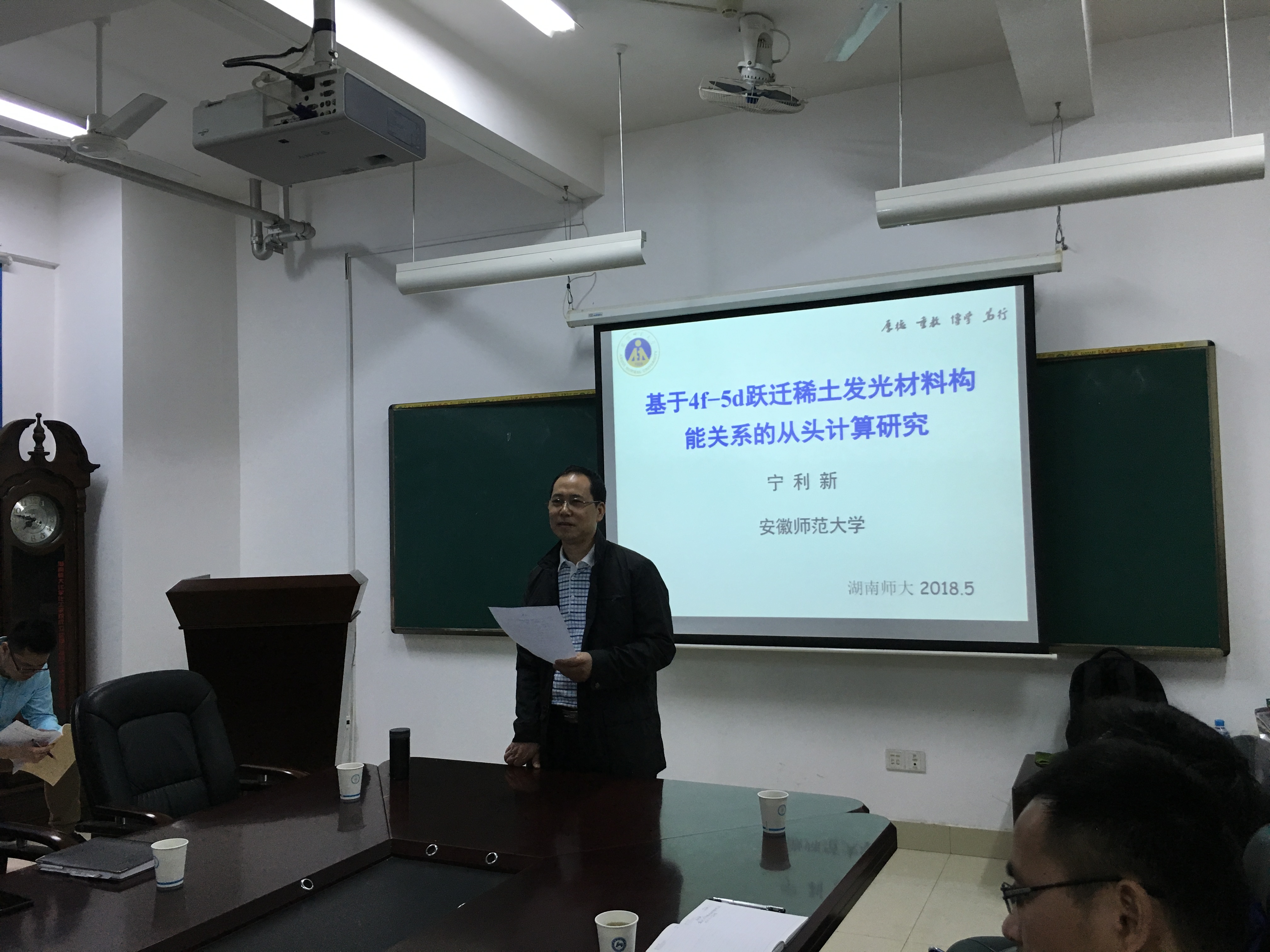 5月7日下午16:00安徽师范大学宁利新教授在206会议室给我院师生带来了一场题为《基于4f−5d跃迁稀土发光材料构能关系的从头计算研究》的学术报告。报告由廉世勋教授主持,首先廉教师对宁利新教授做客化学化工学院表示热烈欢迎,并简要介绍了宁利新教授的研究领域和学术成果。参与本次报告的有化工院部分师生。