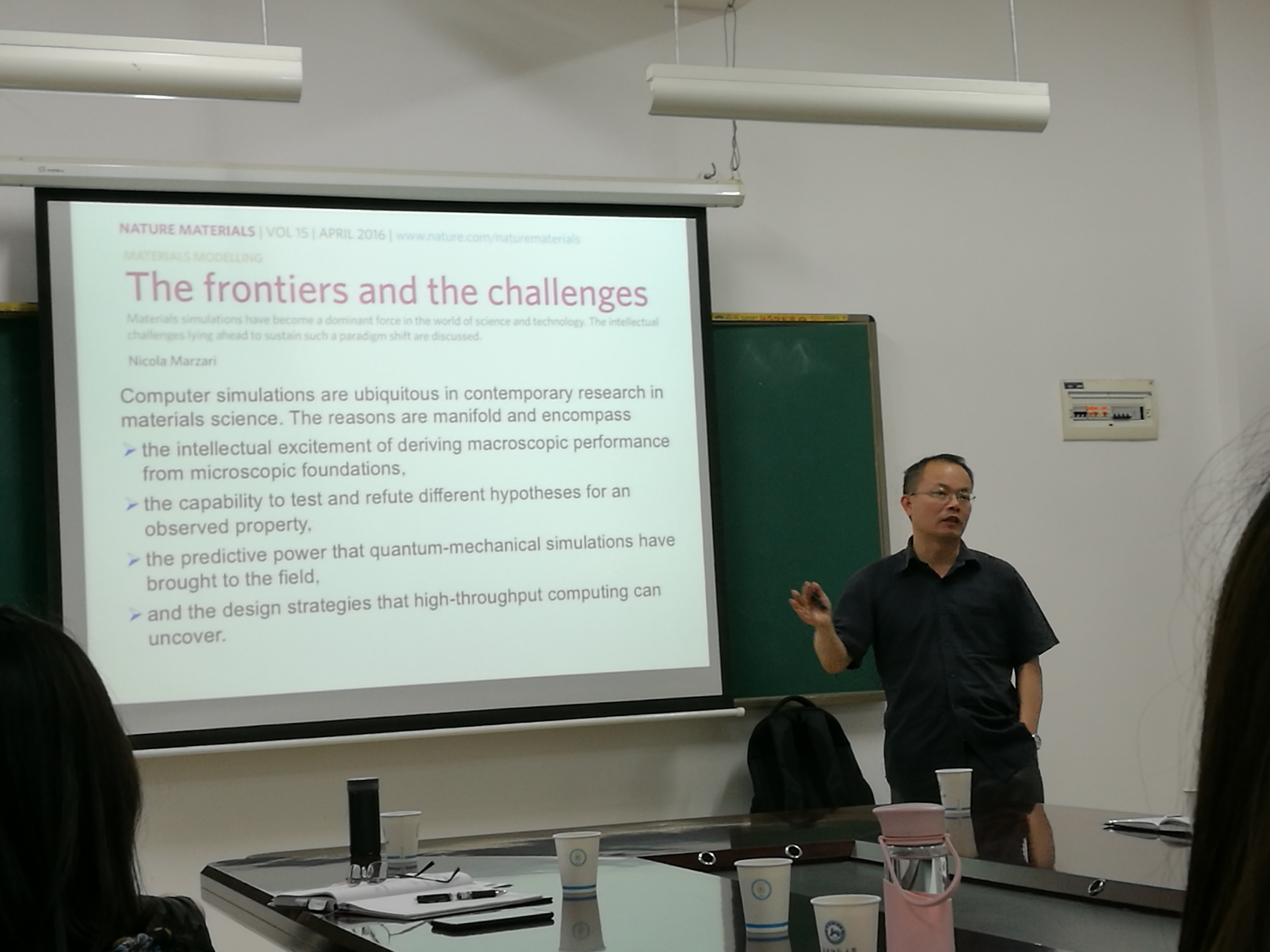 报告中,宁教授讲了从头计算方法的重要性,可用于量子化学和结构化学的演绎计算、化学中的条件预测、化学实验的模拟等方面。着重从化学基质组成出发,围绕Ce3+/Eu2+在不同配位环境下的局域结构、电子性质,结合从头计算的方法计算出Ce3+/Eu2+在不同基质格位的跃迁能量,从理论上解释了Ce3+/Eu2+掺杂基质的发光机理。最后,老师和同学们针对本次报告及自己在研究中遇到的问题向宁教授进行探讨,并表示宁教授所讲的内容对今后的科研有非常大的指导意义,在今后的科研中更要注重理论计算支持实际研究。