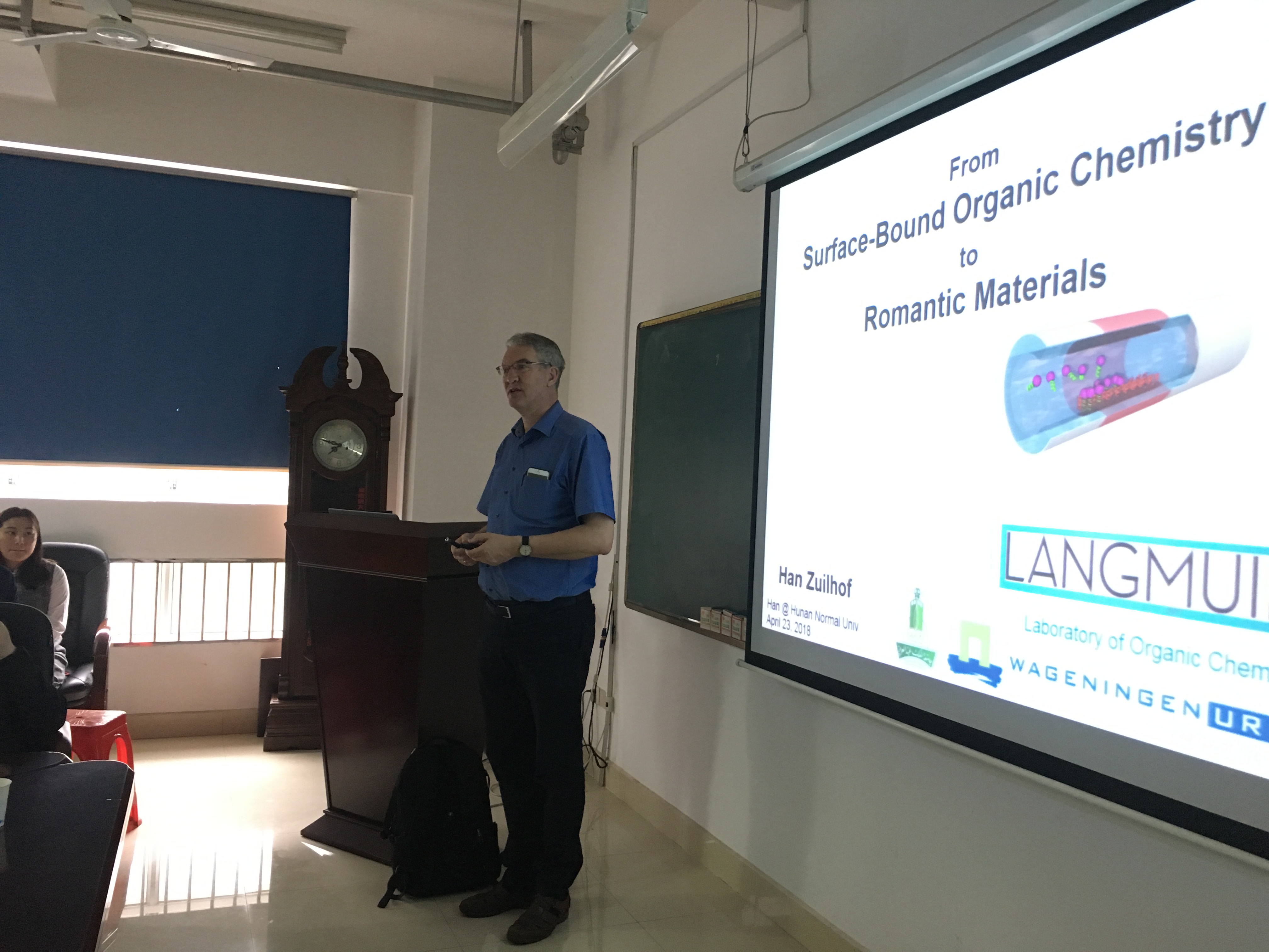 2018年4月23日上午9:00荷兰瓦格宁根大学汉.泽伊夫教授在化学化工学院二楼206会议室为我院师生带来了一场题为“从表面键合有机化学到浪漫材料”的学术报告,报告由我院院长陈波教授主持,化学化工学院师生们聆听了此次报告。