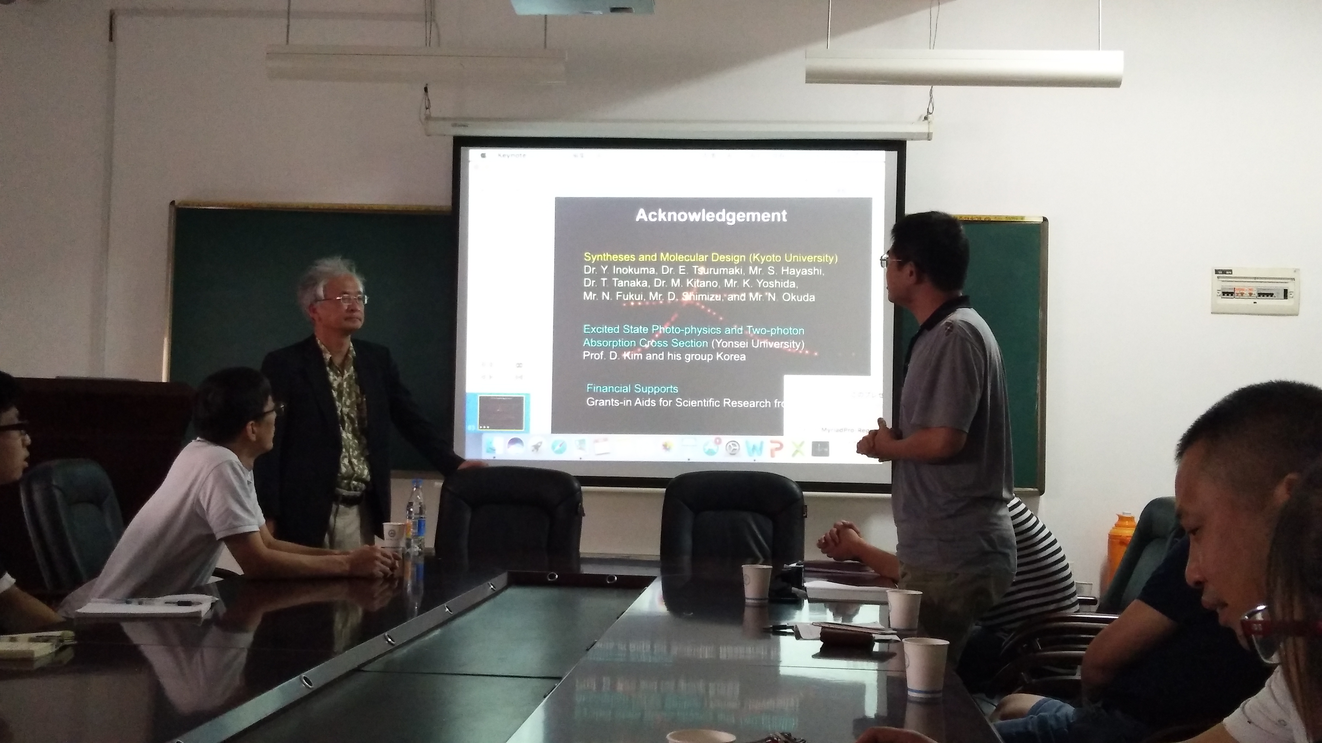 Osuka教授主要从事卟啉方面的研究,此次报告详细介绍了亚卟啉的合成方法及其性能研究,并对其单晶结构进行了非常精彩的解说。报告结束后,同学们积极的提出自己的疑惑之处,Osuka教授细心对这些问题进行了回答,得到了热烈的掌声。
