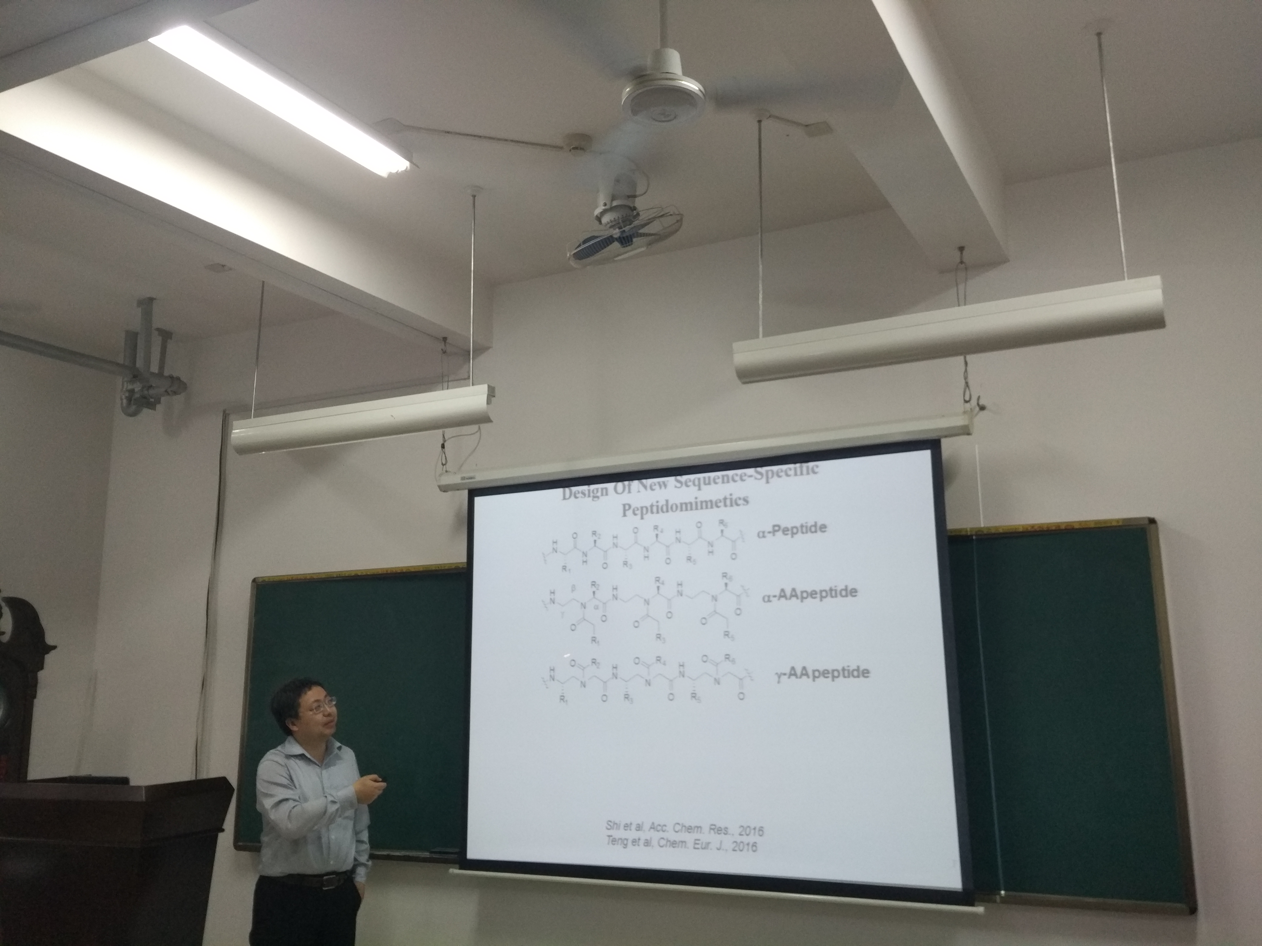 季海涛博士主要从事抗癌药物的研究以及合成和生物评价高效和选择性的小分子抑制剂,以及抗癌药物的研发。本次报告正是对这部分内容进行了详细的介绍,季海涛博士首先介绍了研究背景,然后围绕对抗癌药物研究的进展,以及抗癌药物的最新研究进行了详细精彩的介绍。报告结束后,师生们的反应热烈,同时积极地提出了自己的疑问和看法。季海涛博士耐心仔细的逐一解答,获得了在场听众的阵阵掌声。