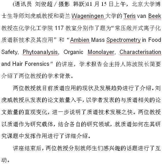 北京大学刘虎威教授和Wageningen大学Teris van Beek教授为我院师生作学术报告