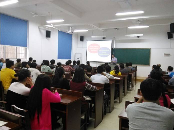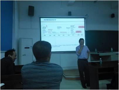 2014年10月28日下午16:00,北京大学王剑波教授应邀来我院交流,并在化工院新楼117教室为全院师生带来了一场题为“基于金属卡宾的交叉偶联反应”的精彩学术报告。此次报告会由张友玉教授主持,全院师生积极参与,现场气氛热烈,座无虚席。首先, 王教授介绍了自己课题组的相关研究工作以及研究成果;接着,学院的老师和学生就相关问题和王教授进行了亲切交流。报告中王教授还与我院师生分享了其自身的授业经验及北大研究生的科研工作形式,教授详细地讲述,耐心地解答,使在场师生受益匪浅。 报告会后,王教授在有机化学科研团队的老师们陪同下参观和考察了实验室。