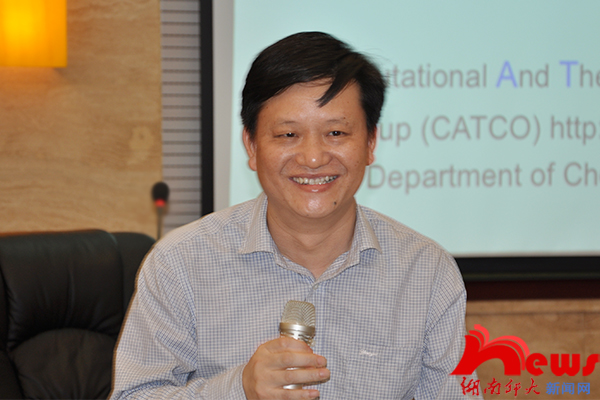 (记者 黄玉凝 梁昌均)6月8日上午,由我校化学化工学院苏曼教授组织的第三届长沙理论与计算机化学(材料)国际学术交流会开幕式在里仁楼513报告厅举行。来自美国、加拿大、德国、英国、希腊、新加坡以及中国大陆、台湾等8个不同国家和地区的15名中外专家参加此次交流会。开幕式由化学与化工学院特聘教授Steven.R.Kirk与肖乐辉教授主持。副校长蒋洪新出席开幕式并致辞。