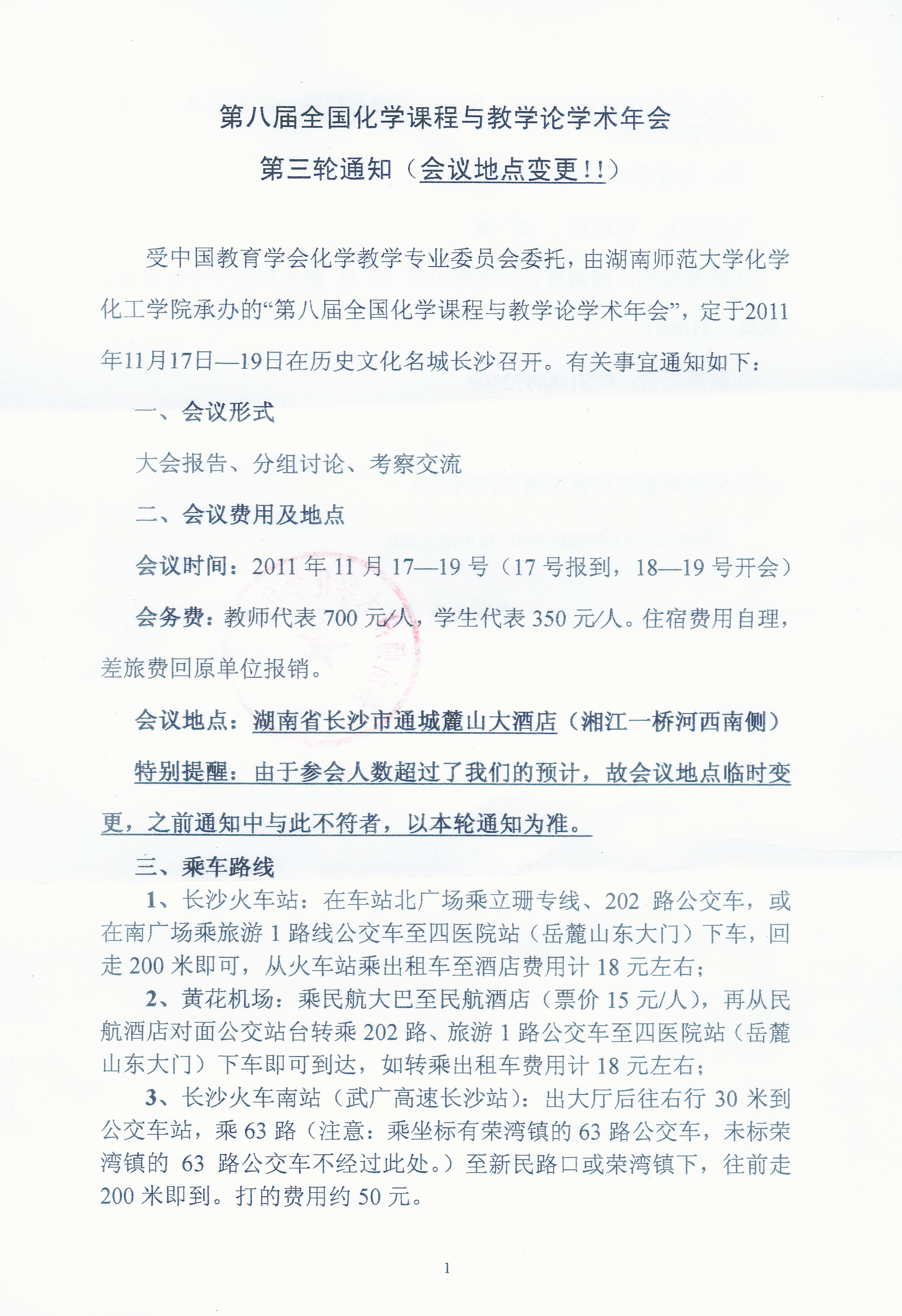 下一条:第八届全国化学课程与教学论学术年会通知(第二轮)