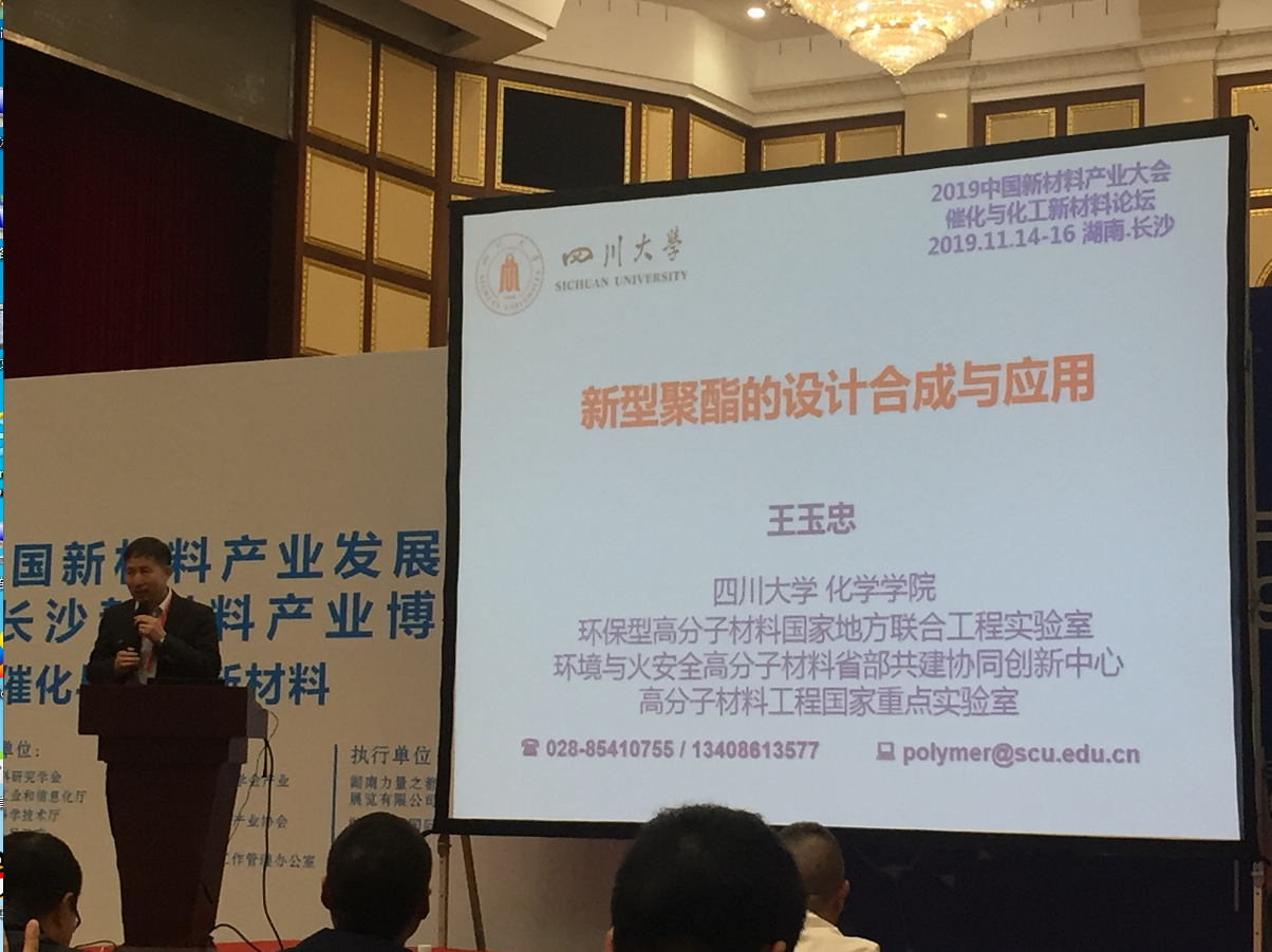 此次同学们参加的是催化与化工新材料分论坛,此次论坛由我校尹笃林教授主持。同学们在听取王玉忠院士关于新型聚酯的合成与应用,林民教授关于催化氧化新材料空心钛硅分子筛开发与应用,蔡小平教授关于高性能碳纤维工业生产与应用,易春旺教授关于几内酰胺基共聚酰胺的绿色制备等报告后,获益良多。