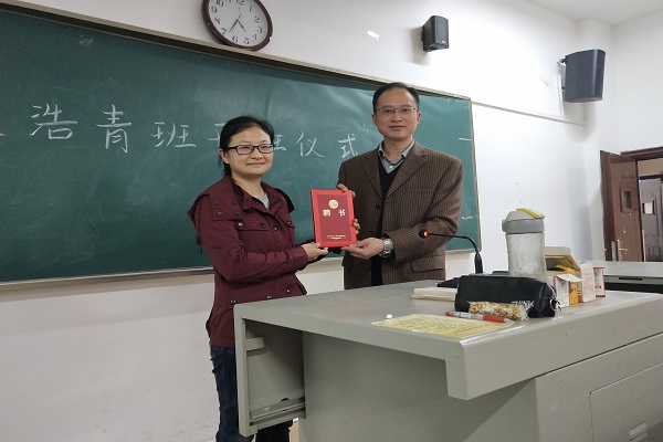 仪式由班长张思思主持。第一项是班导师受聘仪式,由教学副院长谭亮教授为班导师徐琼副教授颁发了聘书。18级浩青班发起人、导师代表尹笃林教授和班长项爽分别代表导师和同学讲话,激励各位浩青班的同学为自己的梦想努力奋斗。会议最后谭亮为大家讲述了学院对本届浩青班的要求和相关政策,并鼓励同学跟随导师进入实验室进行试验,争取在本科阶段取得一定的实验成果并发表论文。