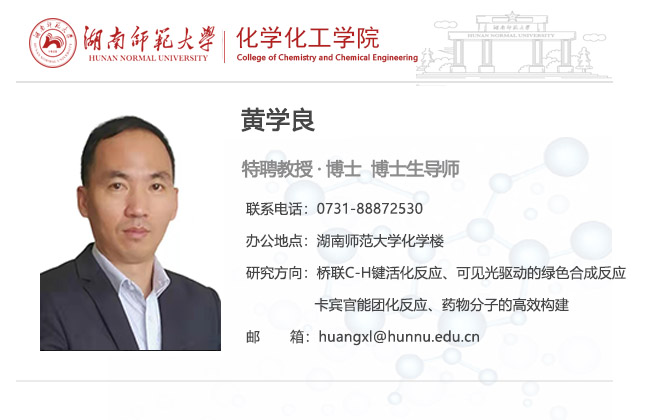 理学博士,湖南省“芙蓉学者奖励计划”特聘教授,“潇湘学者”特聘教授、博士生导师、课题组长。2003年毕业于湖南科技大学化学化工学院,获理学学士学位。2003年9月至2006年7月,于南开大学化学学院攻读硕士学位(导师:吴世华教授)。2009年7月于中国科学院化学研究所获得有机化学博士学位(导师:叶松研究员)。博士期间曾获2008年中国科学院化学研究所青年科学特别奖。博士毕业后在德国马普煤炭研究所Maulide教授组从事博士后研究,2012年转为Research Scientist留所工作。2013年至2020年在中国科学院福建物质结构研究所工作,任课题组组长、博士生导师。2021年加入太阳集团电子游戏。研究成果发表在J. Am. Chem. Soc.、Angew. Chem. Int. Ed.、Nature Communications、ACS Catal.、Chem. Sci.等顶级化学期刊上;2015年入选中国科学院“百人计划”;2016年入选福建省“青年拔尖人才”;2019年荣获“Thieme Chemistry Journals Award”学术奖项;2021年获得湖南省杰出青年基金资助;同年入选湖南省“芙蓉学者奖励计划”特聘教授。