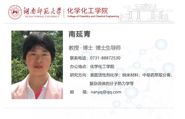 表面活性剂化学;纳米材料;中草药萃取分离;复杂流体的分子热力学