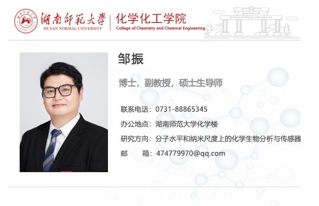 2022年9月起加入太阳集团电子游戏国家杰青、教育部长江学者杨荣华教授团队从事科研教学工作。主要从事分子水平和纳米尺度上的化学生物分析与传感器研究。聚焦于核酸荧光传感与分子识别的关键科学问题,系统开展基于核酸的生化传感新原理与新方法的基础应用研究,构建疾病标志物分析、药物分析、环境污染检测、食品安全分析的新方法。目前主持承担国家自然科学基金青年项目、湖南省自然科学基金优秀青年项目、湖南省教育厅优秀青年项目、长沙市自然科学基金等多项研究课题。已在Angewandte Chemie、Biomaterials、Trends in Analytical Chemistry、Analytical Chemistry等国际权威期刊发表论文30余篇,申请发明专利8项,参编专著1部。湖南省研究生创新项目指导老师(3项)。与中南大学湘雅医院、湖南省肿瘤医院、湖南省人民医院等保持良好合作关系,针对临床问题展开科学研究,努力在分子诊断、疾病治疗等相关领域推进成果转化,产生效益。