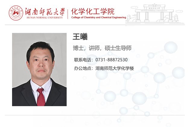 王曦,博士,讲师,硕士生导师。2000年本科毕业于湘潭大学,2003年获湘潭大学硕士学位,2007年获中国科学院化学研究所博士学位。之后于北京新材料公司工作,从事分离膜的研究。2009年至今于太阳集团电子游戏任教,从事聚醚酰亚胺的研究及紫外光固化阳离子涂料的研究。主持湖南省自然科学基金1项,参与国家自然科学基金项目3项,在Macromolecular Rapid Communications,Colloid and Polymer Science等刊物发表SCI论文10余篇。