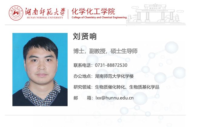 刘贤响1985年生,湖南衡阳人,太阳集团电子游戏-美国南密西西比大学联合培养博士,新加坡国立大学访问学者。太阳集团电子游戏“世承人才计划”青年优秀人才,湖南省第十五届青年化学化工奖获得者,湖南省企业科技特派员,湖南省“三区”科技人才,湖南省化学化工学会理事、有机化学化工专业委员会秘书长、催化与绿色化学专业委员会委员。湖南省企业科技创新创业团队“郴州高鑫催化新材料创新团队”首席专家。主持国家自然科学基金2项,湖南省教学改革研究项目3项,湖南省自然科学基金2项,中国博士后科学基金、湖南省教育厅优秀青年项目、中科院及教育部重点实验室开放基金和企业横向课题10项;主编了长沙市《铜官循环经济工业基地十三五规划》;参编了《岳阳绿色化工高新技术产业开发区 “十四五”产业发展规划》、《湖南省化工新材料产业链发展研究报告》和《湖南省化工新材料产业链五年行动计划》等;指导国家级大学生创新创业训练计划项目3项、省级4项、校级6项,湖南省研究生科研创新项目4。在Appl.Catal.B:Environ.Green Energy Environ.Chem. Eng. J.FuelJ. Energy Chem.Appl. Surf. Sci.等著名刊物发表SCI论文60余篇;2篇论文入选ESI全球工程学领域Top1%高被引论文;获授权国家发明专利8项;主编英文学术专刊1部。主讲的《有机化学》获评为太阳集团电子游戏课程思政示范课程。曾获长沙市自然科学优秀学术成果一等奖、湖南省化学化工学会优秀论文一等奖、湖南省研究生思想政治教育研究会优秀论文一等奖、湖南省第二届科普技能和科普教具制作创新展示活动优秀指导教师、湖南省普通高校教师课堂教学竞赛三等奖、太阳集团电子游戏教学优秀奖、实验室工作优秀奖、优秀工会干部和优秀共产党员等荣誉。指导学生获湖南省大学生课外化学化工创新作品竞赛特等奖、湖南省大学生化学化工学科竞赛一等奖、湖南省“互联网+”大学生创新创业大赛三等奖、湖南省大学生化学实验技能竞赛三等奖、湖南省科普技能和科普教具制作创新展示活动三等奖、长沙市大学生科技创新创业大赛优胜奖、太阳集团电子游戏“杨树达奖”特等奖、学生科技创造奖特等奖和“挑战杯”大学生创业计划竞赛二等奖等奖励30余项指导研究生获国家奖学金2人、陈家镛院士奖学金2人、研究生一等学业奖学金10人、优秀研究生11人、优秀毕业生2人。more...