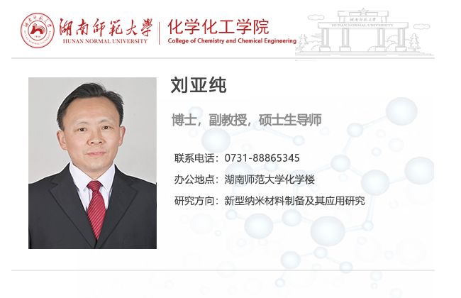 刘亚纯,男,45岁,博士,副教授。1987年6月于宁乡七中毕业;1991年6月于湘潭大学化学系毕业,1991年8月至2000年6月在湖南省永和磷肥厂从事技术管理工作;2003年6月在太阳集团电子游戏获工学硕士学位;2003年9月至2006年7月在中国科学院山西煤炭化学研究所攻读理学博士学位,作为主要研究人员曾参加完成国家重大基础研究与发展规划(973)项目子课题“天然气经合成气选择制备中间馏分油”(国家973项目2005cb221402)。2008年10月在太阳集团电子游戏生命科学学院生物学博士后流动站从事博士后研究工作,作为主要研究人员参加完成国家863计划专项“抗肿瘤寡核苷酸类药物及其体内靶向载体的研发与应用”(2007AA02Z172)。主持完成国家自然科学基金“适于水相或有机相纳米钴基费-托合成催化剂的尺寸效应及稳定性研究(21073057)” 和国家博士后科学基金“抗乳腺肿瘤寡核苷酸药物纳米生物玻璃基靶向载体的研究20100471217”一项,主持完成省科技厅及教育厅科学研究项目各一项,现主持省自然科学基金一项,参与完成国家自然科学基金面上项目“光、电趋动六齿8-羟基喹啉类金属配合物催化分子开关的结构特性与催化性能20873040”及省自然科学基金重点项目各一项。现主要从事新型纳米材料制备及其应用研究,包括医药中间体和化工中间体的绿色有机催化合成,能源催化、环境催化和生物质资源的高效利用,和基因药物纳米靶向载体等研究,已在国内外学术期刊发表SCI研究论文17篇,申请国家发明专利4项,其中一项已授权。