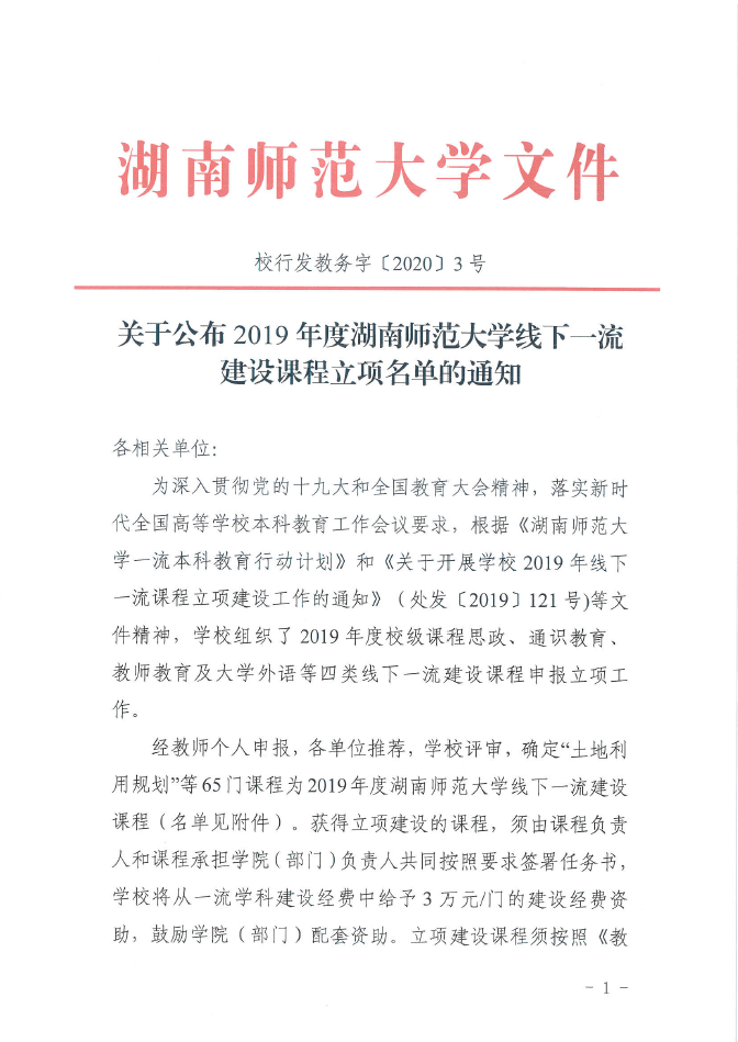 关于公布2019年度太阳集团电子游戏线下一流建设课程立项名单的通知(校行发教务字[2020]3号).pdf