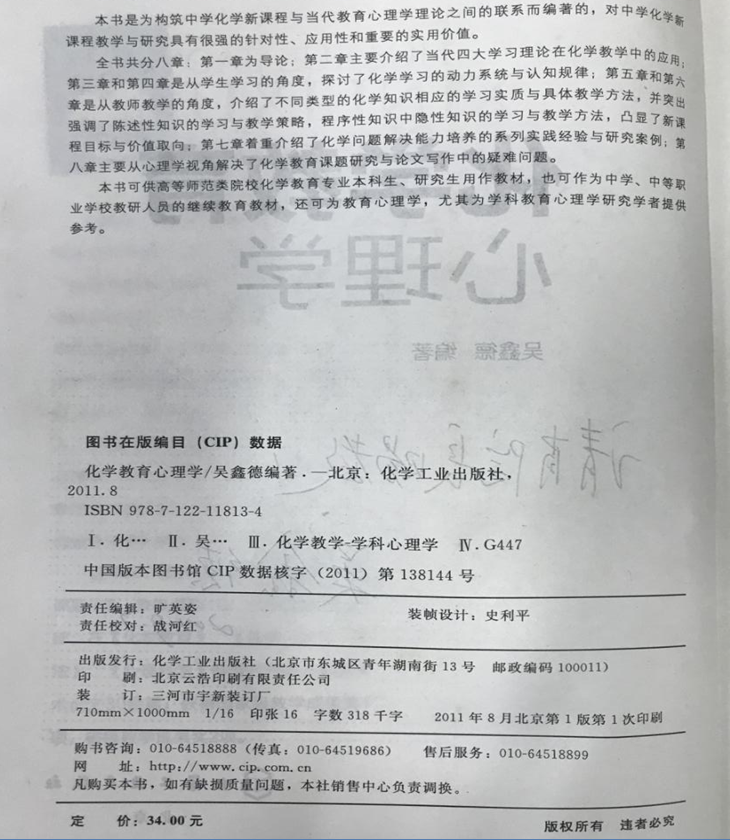 (7) 吴鑫德《化学教育心理学》化工出版社,2011