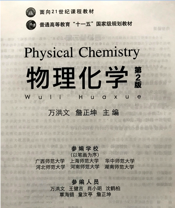 (8)肖小明(参编)《物理化学》(国家“十一五规划”教材) 高等教育出版社,2010